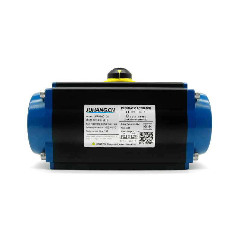 रॅक आणि पिनियन वायवीय अॅक्ट्युएटर डबल अॅक्टिंग jha0160da, उच्च गुणवत्ता, कमी घर्षण, दीर्घ आयुष्य, स्विचिंग वेळा 1 दशलक्षपेक्षा जास्त वेळा, उच्च स्थिरता आहे.
